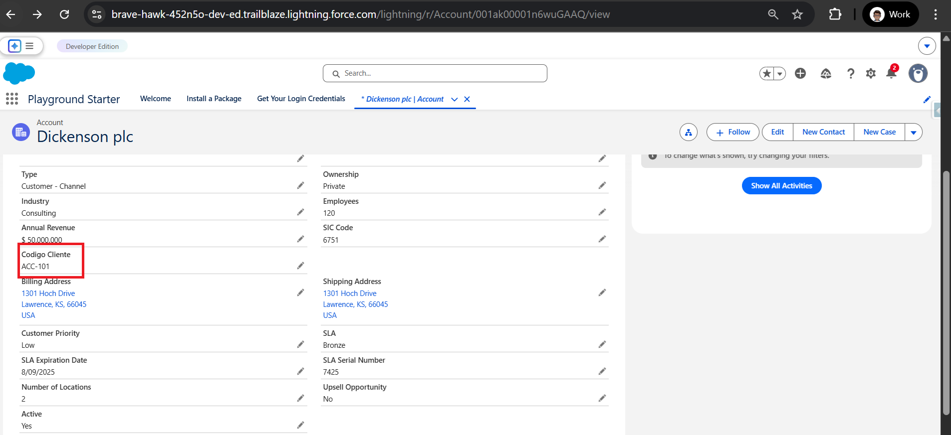 Account: Debe existir un campo con API NameCodigo_Cliente__cmarcado como External ID. - Datos Previos: Deben existir cuentas con los valores
