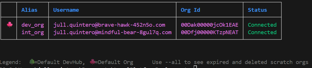 Antes de iniciar, verificamos que el alias del sandbox esté activo y autenticado: